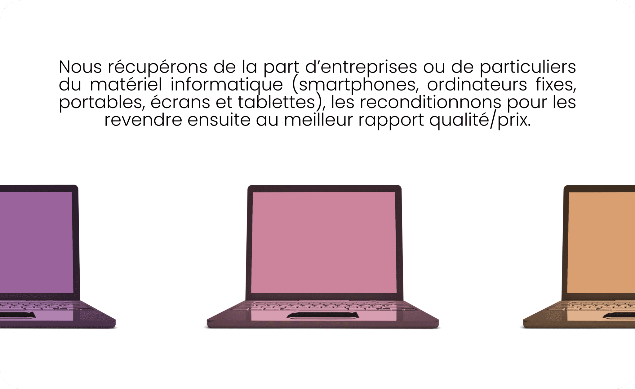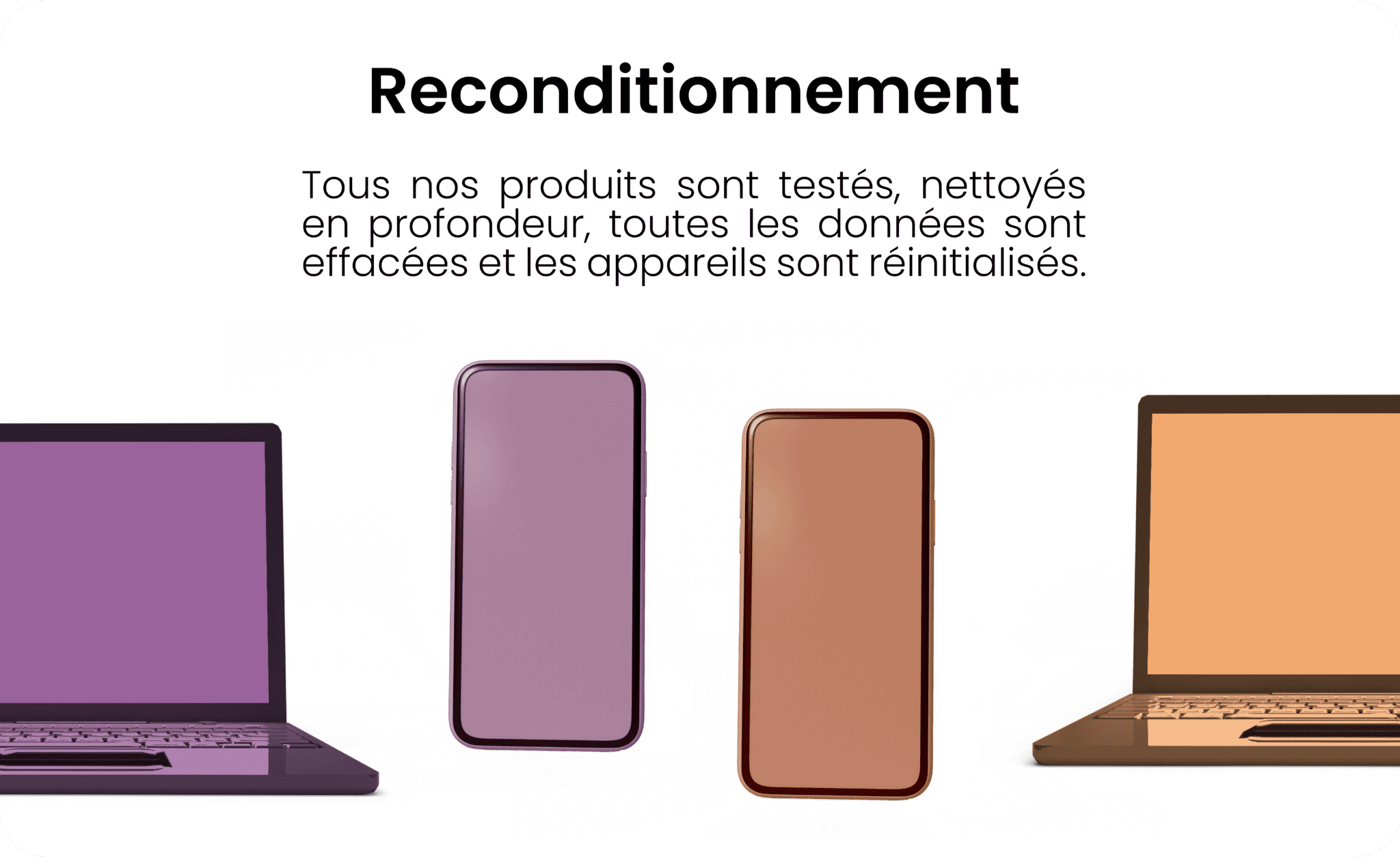 Après avoir développé une filière de reconditionnement de smartphones pour nos clients Recommerce Swiss et Swisscom, nous devenons un revendeur de ces produits via fairstore depuis 2023. Vous trouverez donc dans nos offres les mêmes produits que ceux revendus dans de grandes enseignes du pays.